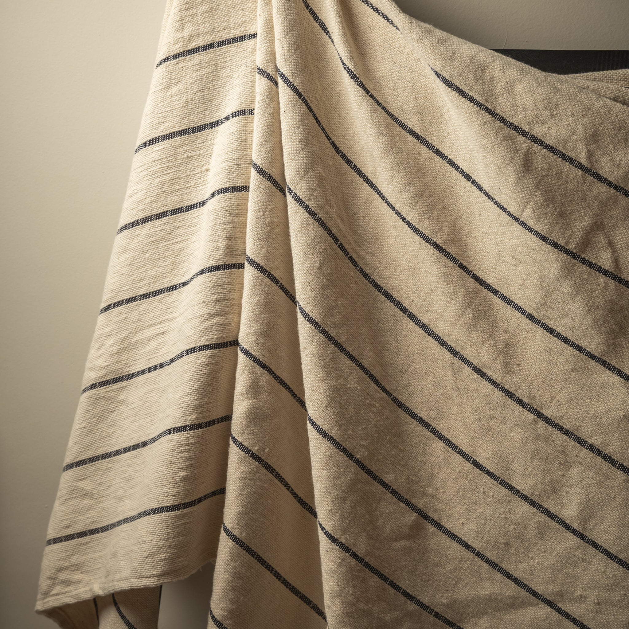 MANTA RÚSTICA DE ALGODÓN ARTESANAL CRUDO RAYAS AZULES