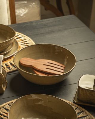 About the product: White glossy enameled ceramic dish and natural base, ideal for preparing salads, pastas or the menus that you want to serve and stand out on the table with this piece .