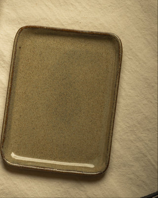 About the product: Rectangular plate of 20 x 18 cm made of enamelled ceramic in marine water tone. Ideal to serve at the table