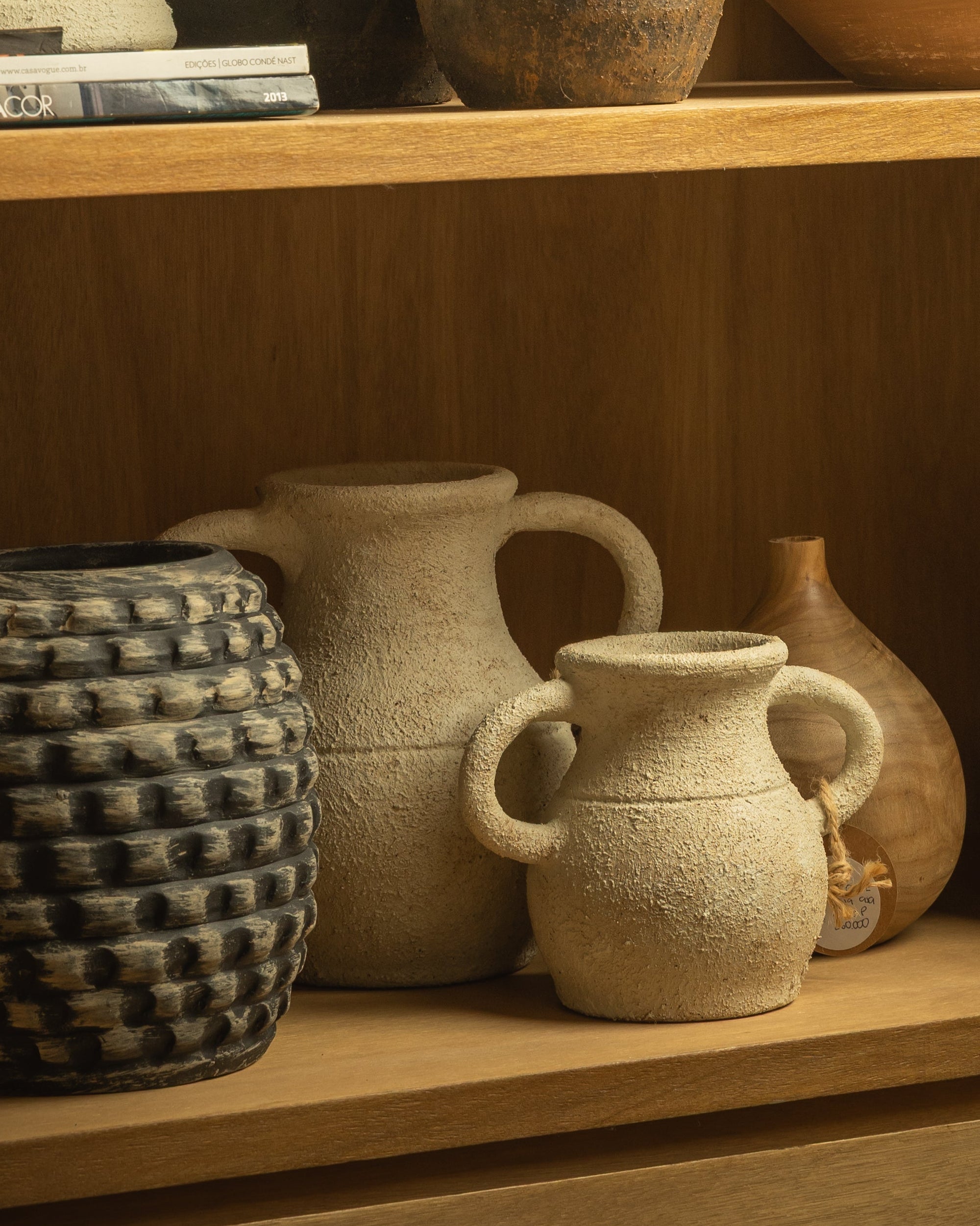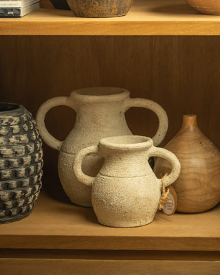 JARRÓN TEXTURADO BLANCO CON ASAS DE CERÁMICA ARTESANAL