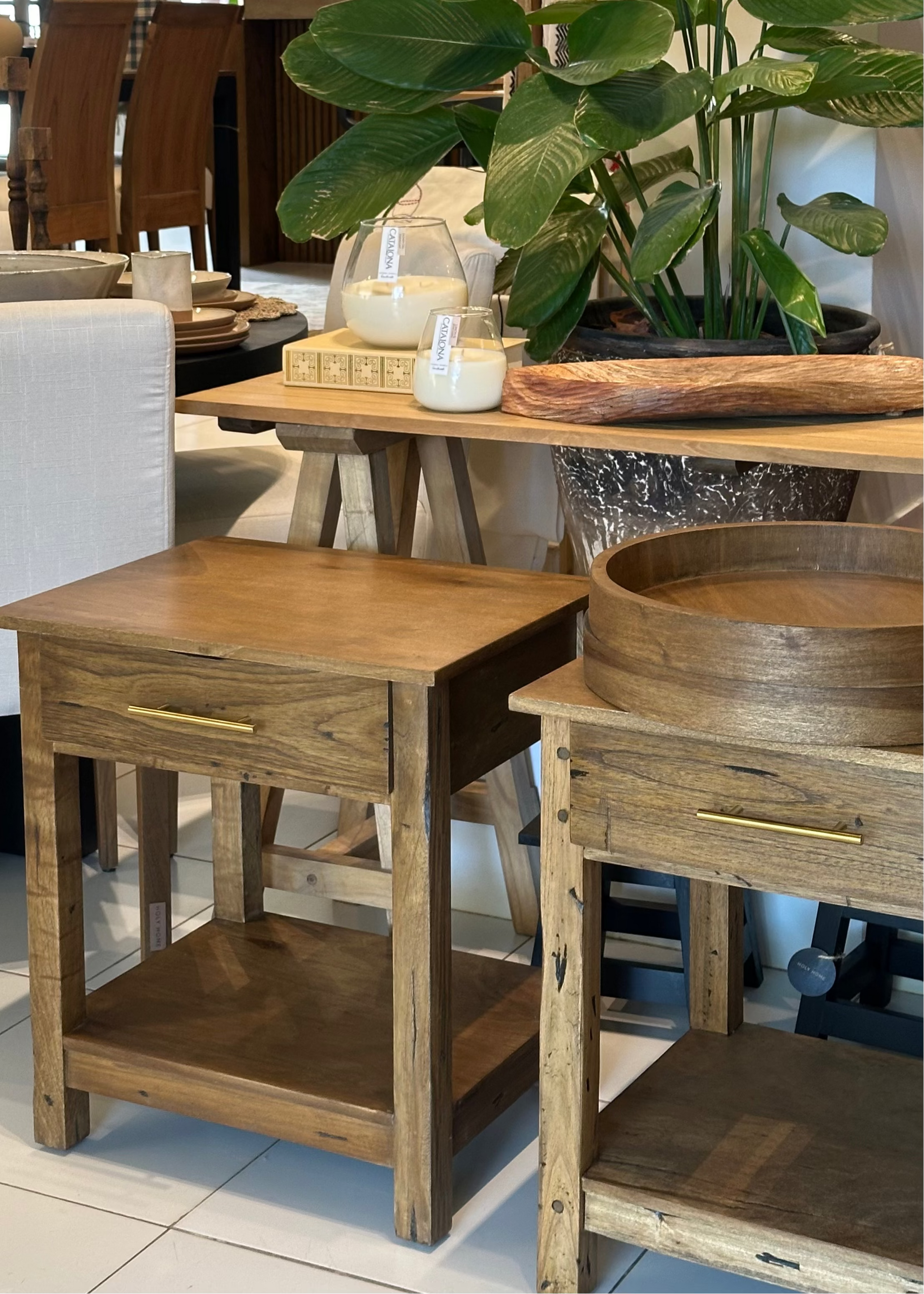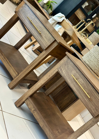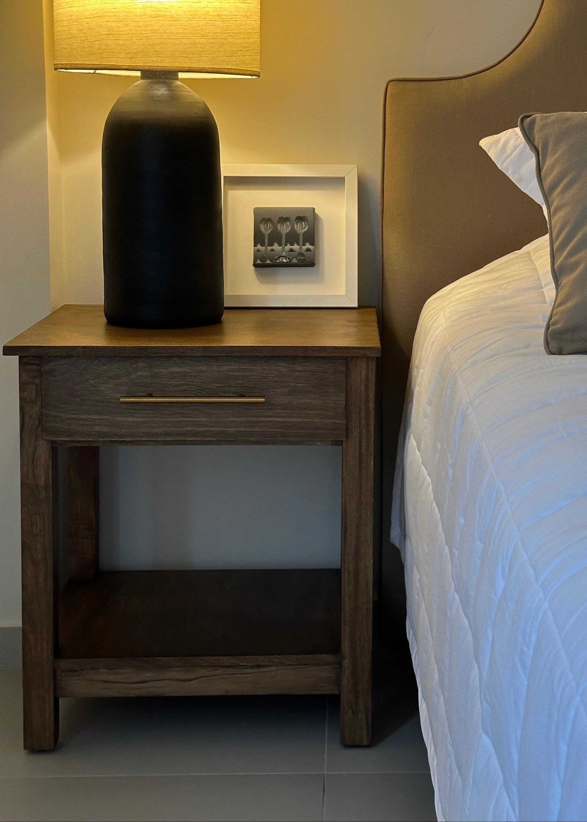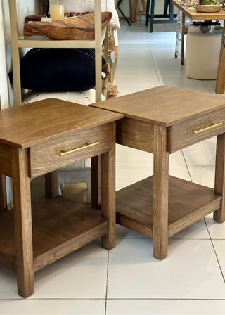 Mesitas de luz de líneas rectas con cajón con tirador y repisa inferior.